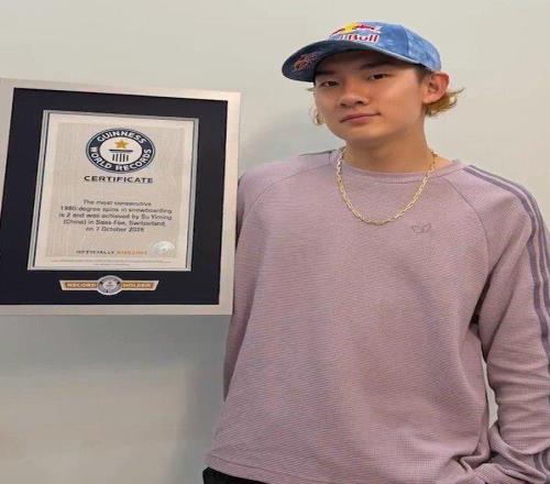 12月25日,据吉尼斯世界纪录网站显示,这一连续动作得到了认证,苏翊鸣成功创造了“一次连贯滑行内完成单板滑雪1980度转体次数最多”的吉尼斯世界纪录,苏翊鸣也收获了纪录证书。