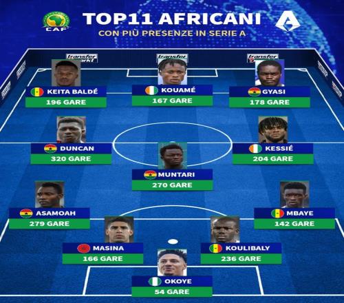 意甲出场数最多的非洲球员11人阵容:库利巴利、凯西领衔